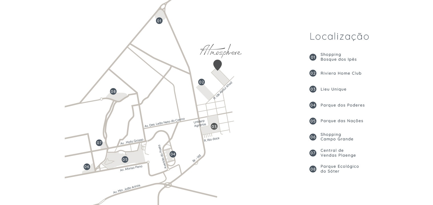 Atmosphere traz a expertise da LW Design Group em uma proposta sem precedentes em Campo Grande. O conceituado grupo de arquitetura se destaca com projetos icônicos e, atualmente, mantém escritórios em Dubai, Hong Kong, São Paulo e Dinamarca. Com ampla experiência em projetos de hotéis e resorts, a LW assina o primeiro loteamento boutique da Plaenge.